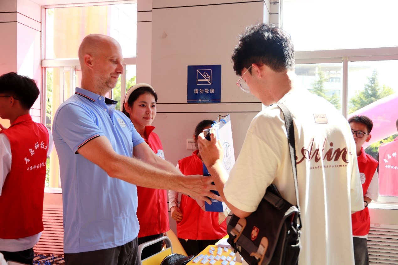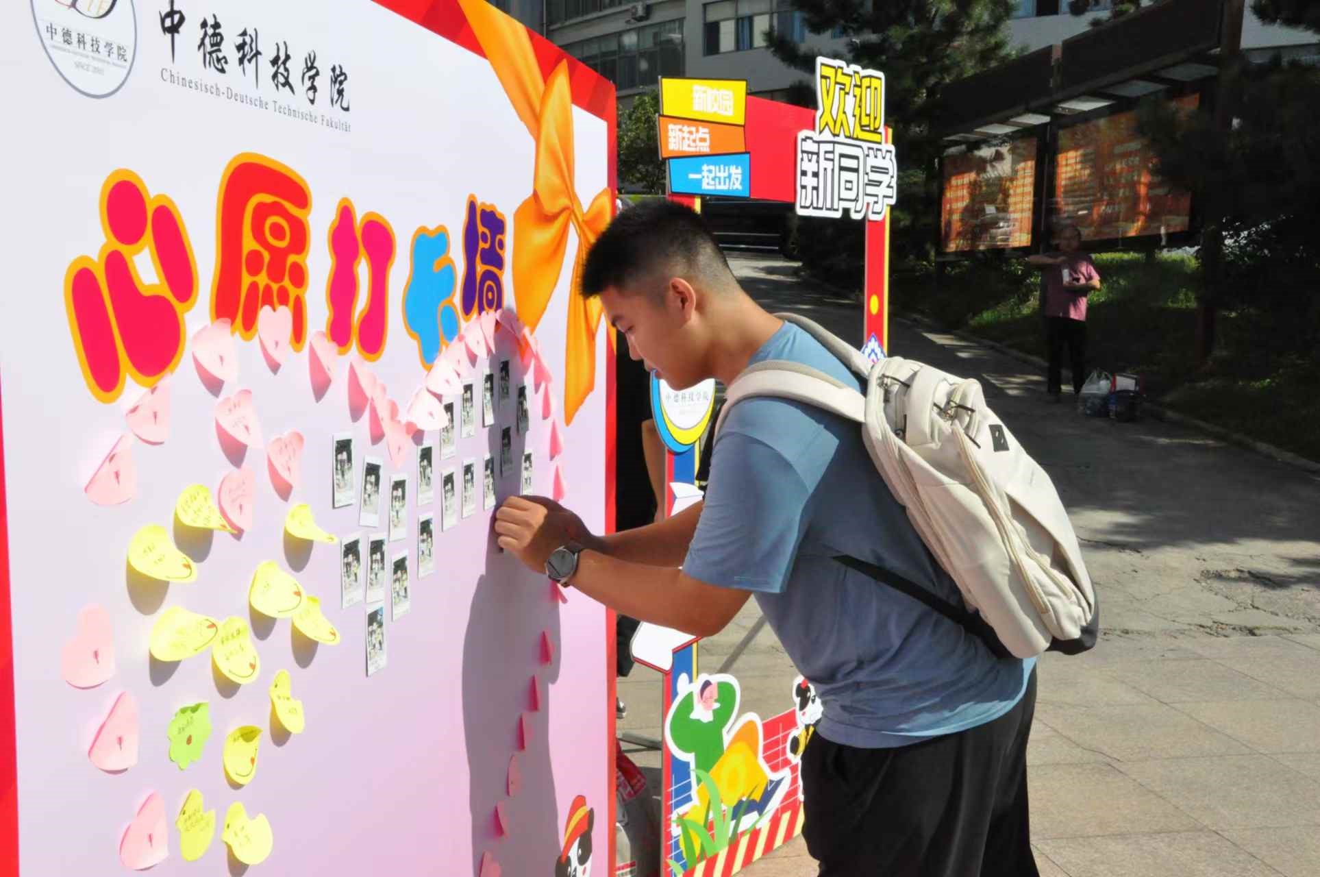 国际化育人,特色彰显。迎新活动融入国际化元素,公司特别制作“七十五载春华秋实庆华诞,筑梦中德奋发有为正当时”主题喷绘,布置迎新站点,赠送包含深情厚谊的新生大礼包,以及富含传统文化韵味的床贴与寓意吉祥的门牌。现场设立“书法展示区”,新生挥毫泼墨,以笔墨传情,向中华人民共和国成立75周年献礼,展现了365best体育官网登录深厚的文化底蕴与国际视野。