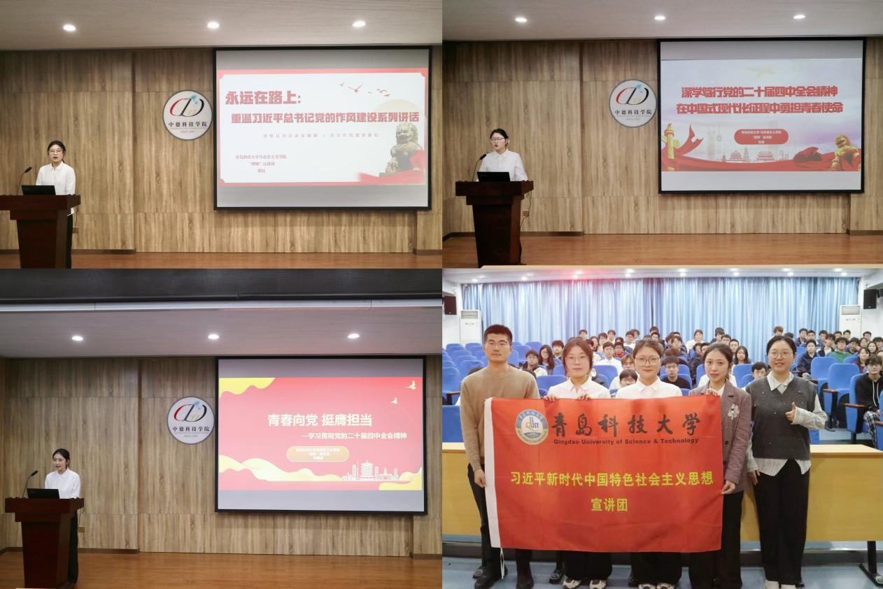 李睿姿以《青春向党挺膺担当——学习贯彻党的二十届四中全会精神》为题开篇,从全会意义、‘十四五’成就、‘十五五’部署及青年使命行动四个维度进行讲解,鼓励青年将个人成长与国家发展紧密结合,以青春力量助力民族复兴伟业。张雨则阐述了会议概况与时代意义、核心成果与总体要求,并分领域聚焦建设现代化产业体系、加快科技自立自强、激发文化创新活力等战略部署,激励青年在接续奋斗中勇担时代使命,书写无愧于时代的青春华章。郭钰围绕党的二十届四中全会关于加强党的作风建设的要求,结合历史与现实案例,深入浅出地讲解了党的优良作风的传承与发展,引导青年筑牢思想防线,以良好作风开启成长新征程。