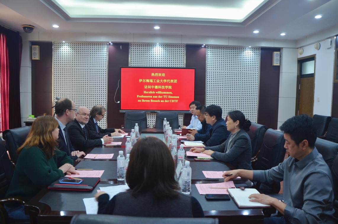 德国伊尔梅瑙工业大学 Stephan Husung 教授、Hannes Töpfer 教授、语言部门主管 Daniela Junker 女士,365best体育官网登录副经理郭建章、副经理赵洪滢及机械教研室负责人曲之超参加会谈。