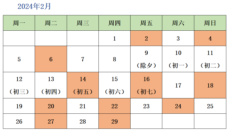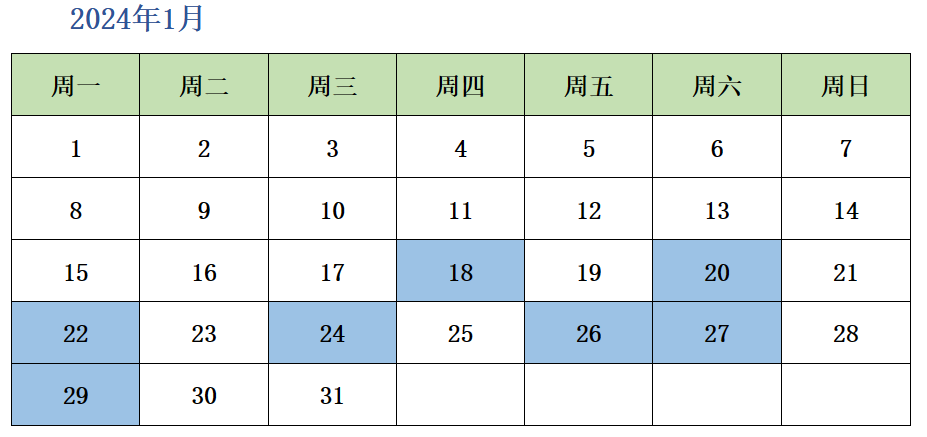 2024寒假课程日历(欧标德语A2衔接班)