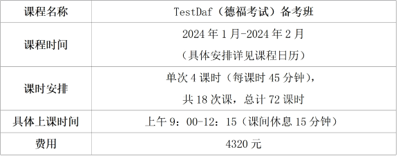 应各位同学及家长对公司开设德福考试培训的需求,365best体育官网登录语言培训与考试中心计划于2024年寒假开办TestDaF(德福考试)备考班,该课程为线上小班制授课,班额15人左右。