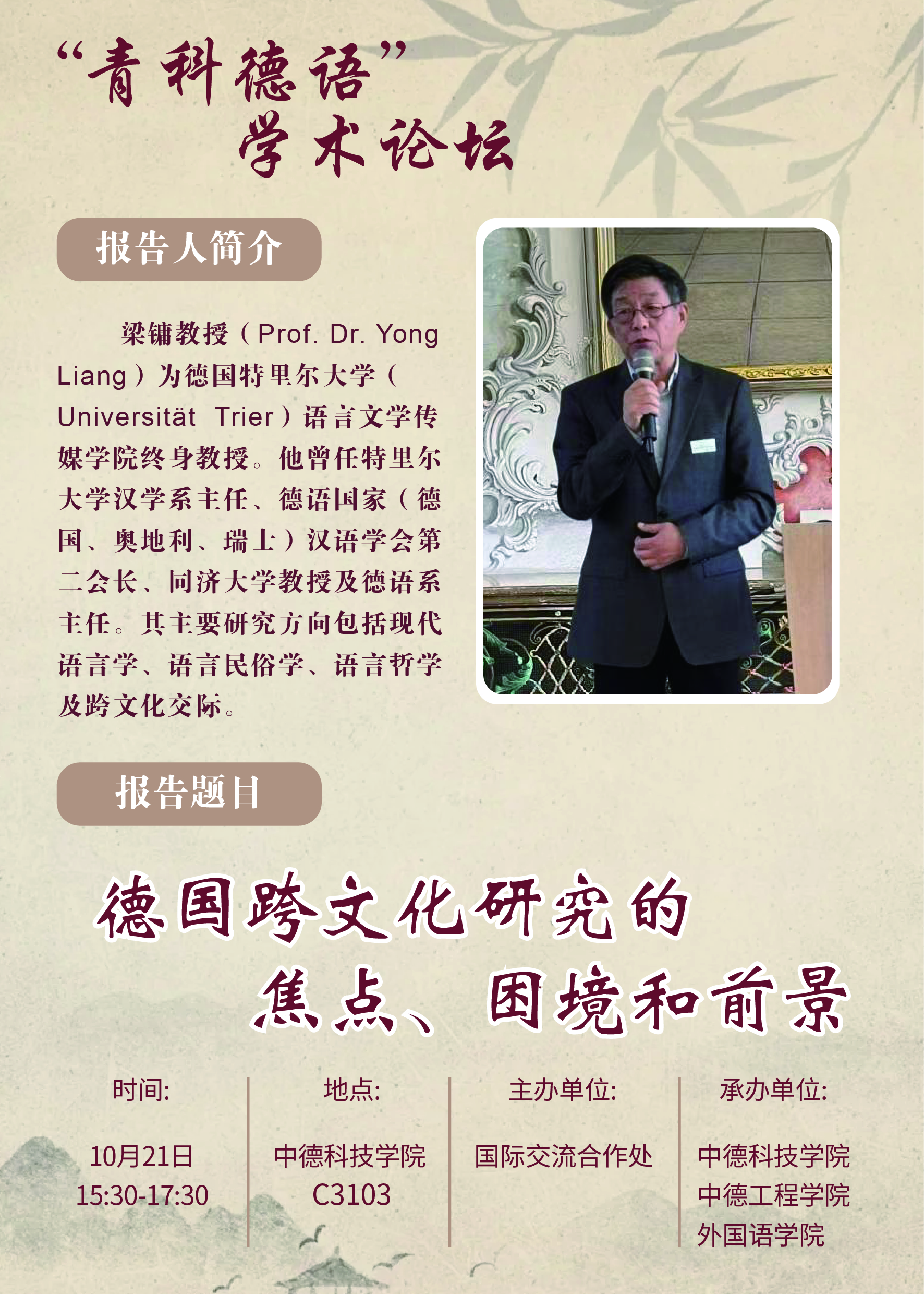 三、报告题目:德国跨文化研究的焦点、困境和前景