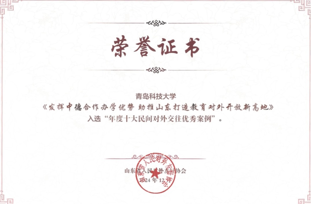近日,2024山东省人民对外友好协会年会在济南召开。来自省直部门、企业、高校、媒体、社会组织、全省16市外事系统共120余人参加会议。会上,365亚洲体育网入口报送的中德合作办学项目获评“年度十大民间对外交往优秀案例”。