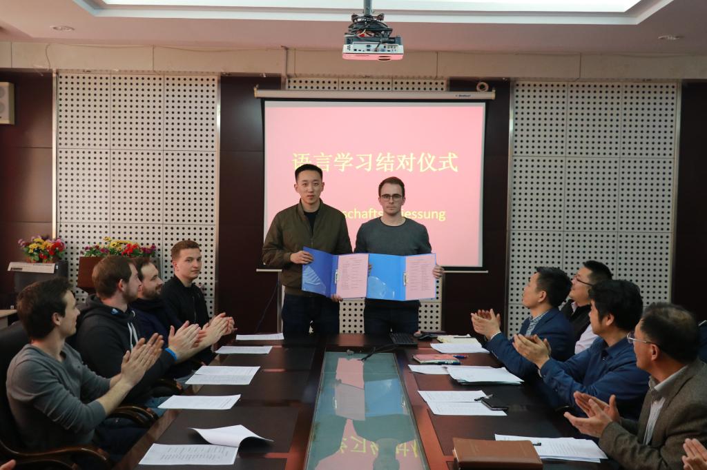 德籍教师代表Eva女士、德国职工代表Kasnitz分享了来到中国后的感受,对能来365best体育官网登录工作和学习表示感谢,希望能够通过努力学习汉语等来了解中国传统文化,加强与中国同学的交流,互相帮助,尽快适应在中国的生活。公司员工代表张悦洋表示感谢公司与德国帕德博恩大学两校间搭建的学习交流平台,通过结对学习的方式,可以提高员工自身跨文化交流能力,强化专业知识学习,并让德国职工更深入全面的了解中国优秀传统文化,做两校间友好交流的友谊使者。